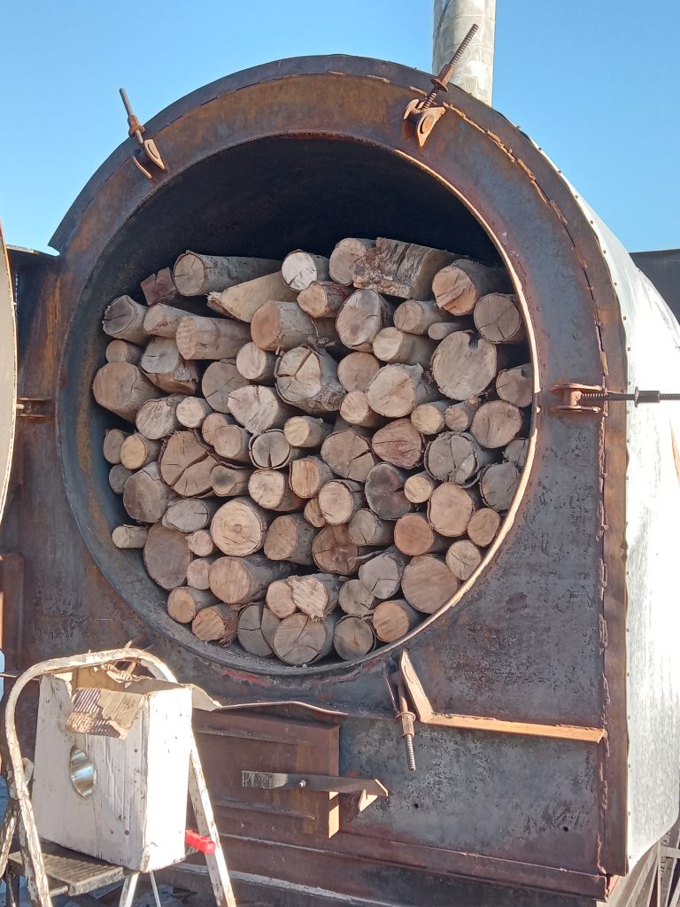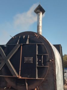 There are no roaring flames in a biochar kiln. Instead, biomass of different kinds is slowly baked until it becomes a carbon-rich char.